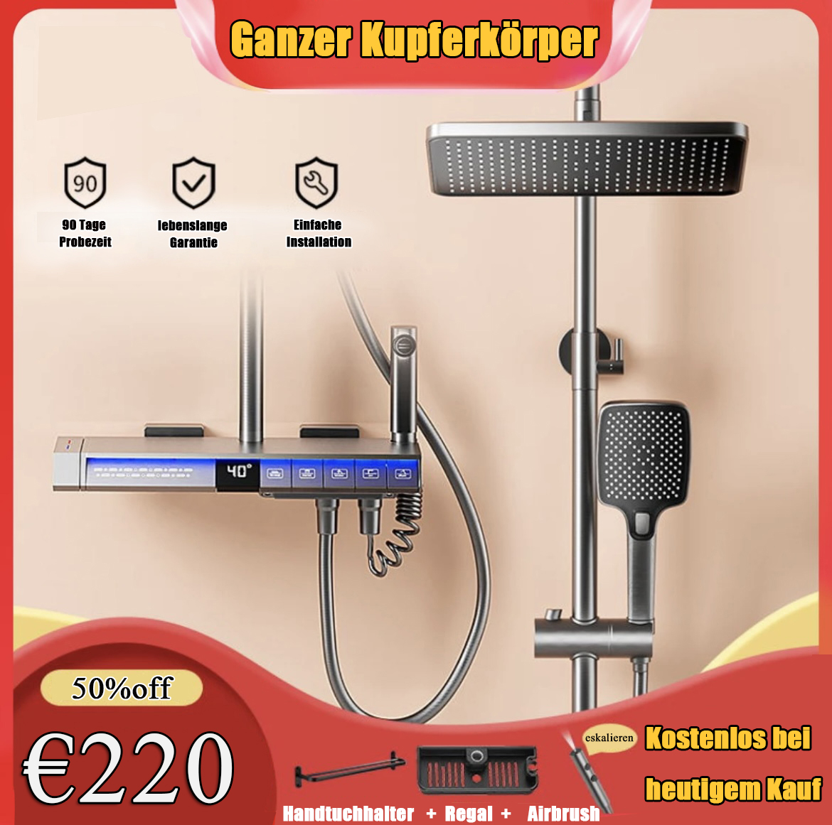 Komplettes Kupfer-Dusch-Set